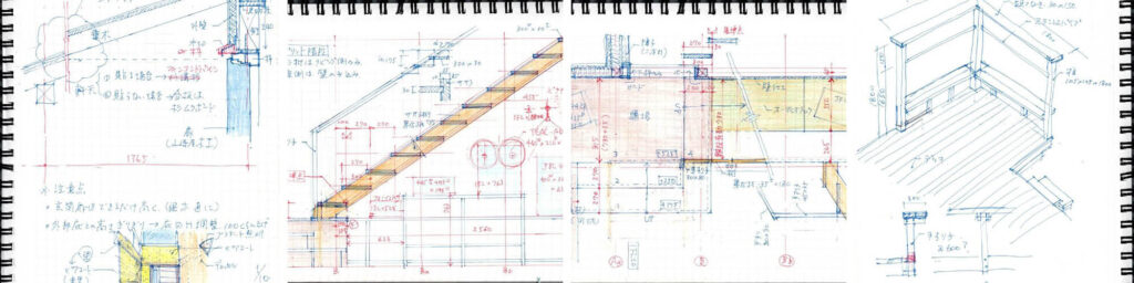 肩の力を抜きつつも色々と試行錯誤をしながら進めた住宅なので現場段階でも自問自答したり大工さんに伝えたりしたスケッチも随分描きました。